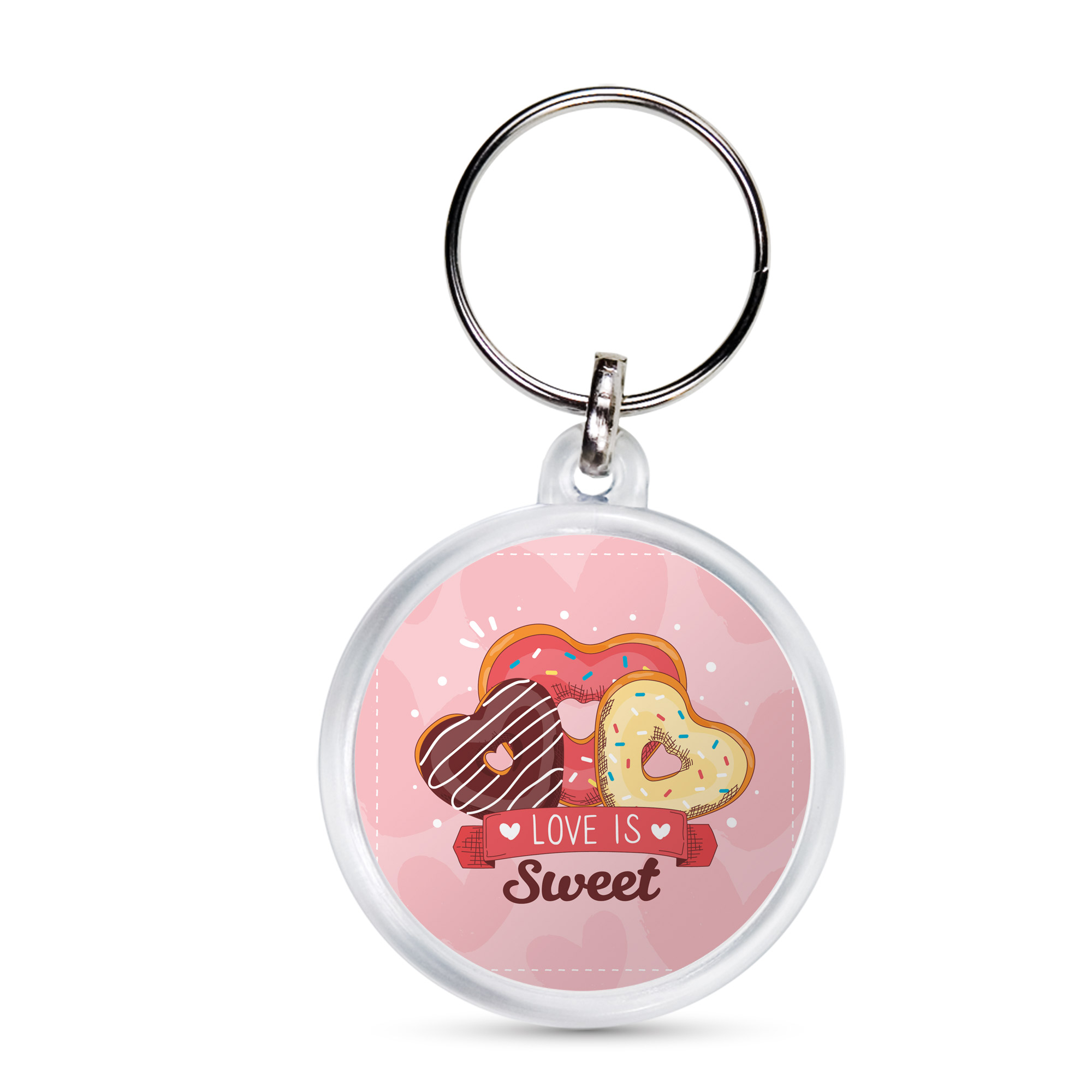 Crie você mesmo porta-chaves circulares personalizados de forma simples e prática! É possível fazer porta-chaves com nomes, porta-chaves publicitários com o logótipo e os dados de contacto da sua empresa, ou até mesmo a imagem de uma campanha de marketing. Aproveite o baixo peso deste acessório para criar itens que se destacam pela sua originalidade e utilidade.Personalizado com inserção de papel em 2 faces (Ø37mm) e tampa em acrílico.